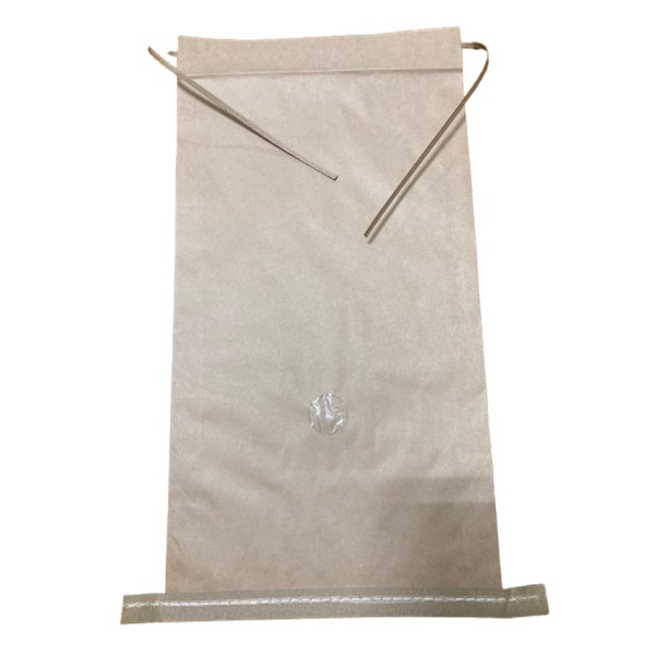 2層により耐久性が抜群。口を閉じるときは紐で結ぶだけ。中身が見えるように窓付きです。