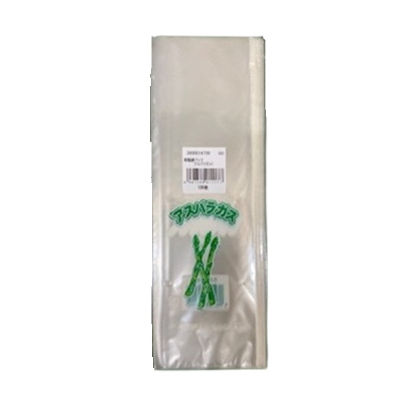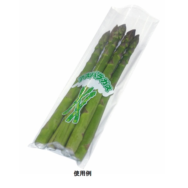 OPP防曇、4穴、プラマーク入、印字「アスパラガス」イラスト入。100枚入り