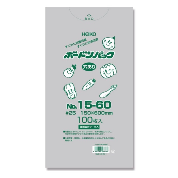 長もの野菜ボードンパック 厚さ0.025mm 穴あき