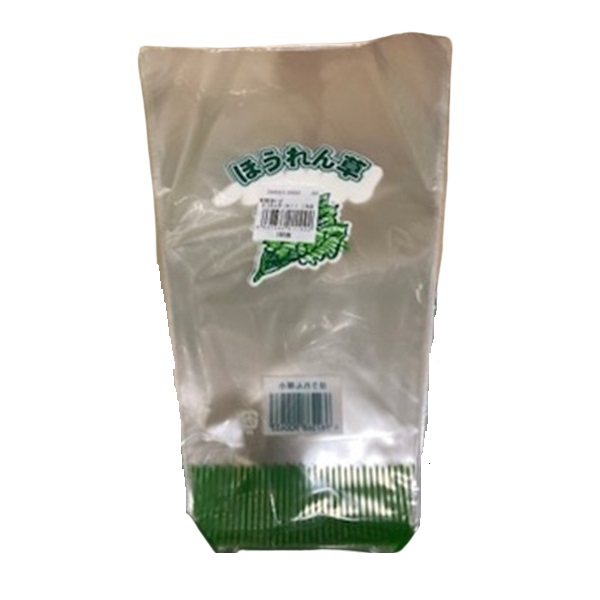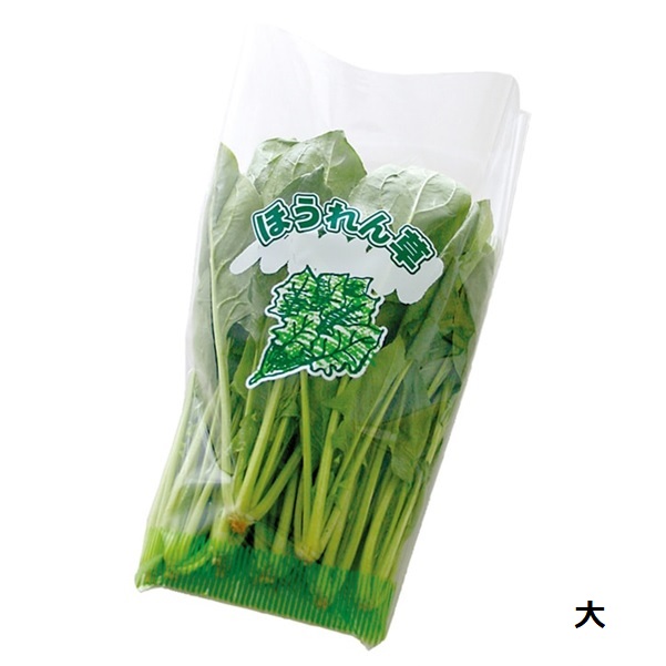 OPP防曇、コーナーカット、プラマーク入、印字「ほうれん草」、イラスト入。