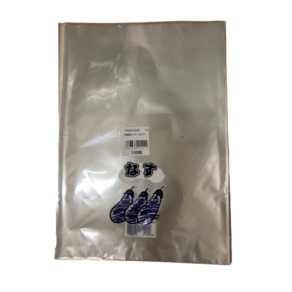 OPP防曇、4穴、プラマーク入、印字「なす」、イラスト入。