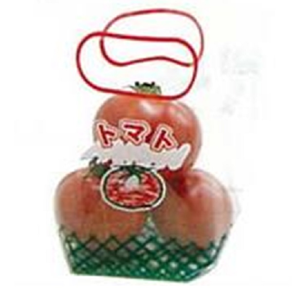 OPP防曇、4穴、プラマーク入、印字「トマト」、イラスト入。