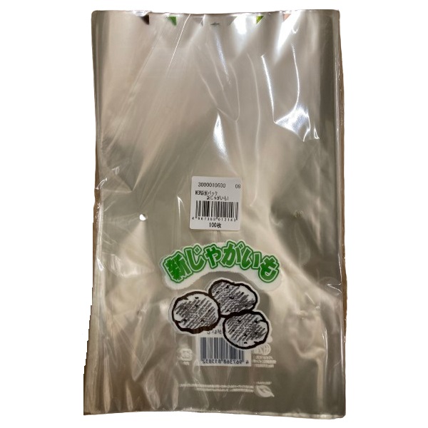 OPP防曇、4穴、プラマーク入、印字「新じゃがいも」、イラスト入。