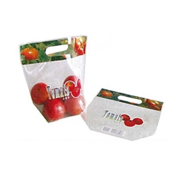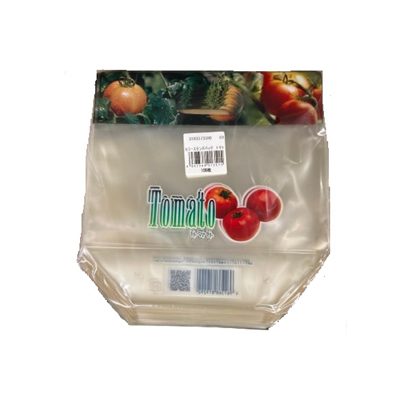 OPP防曇、4穴、プラマーク入、印字「Tomato」、イラスト入。
