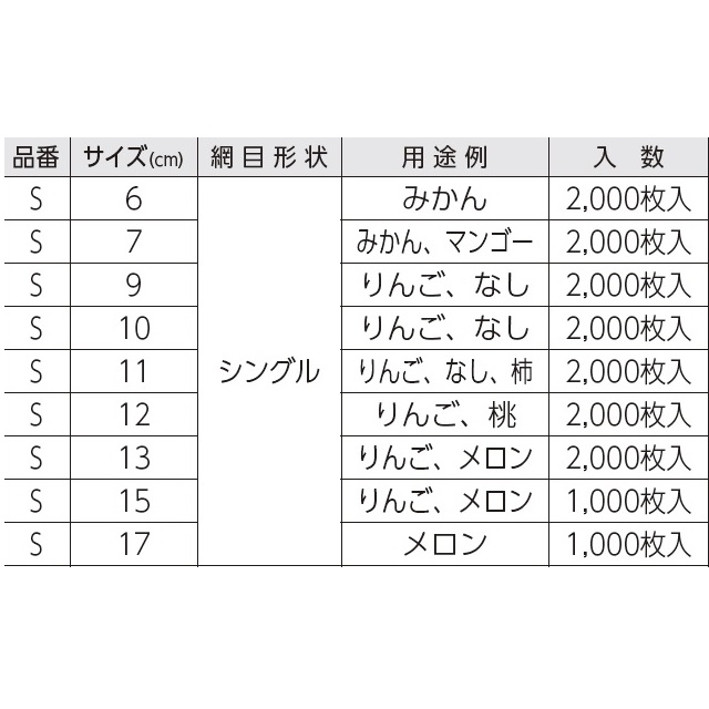 サイズも多種類揃っており果実に応じた最適な網目が選べます。
