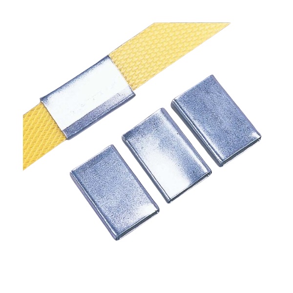 手動でPPバンドや紙バンド梱包をする場合、バンドを固定する金具(重量物でもしっかり固定)バンド幅15.5mm専用 、単位1000ケ入り、専用の金具パンチが必要です。