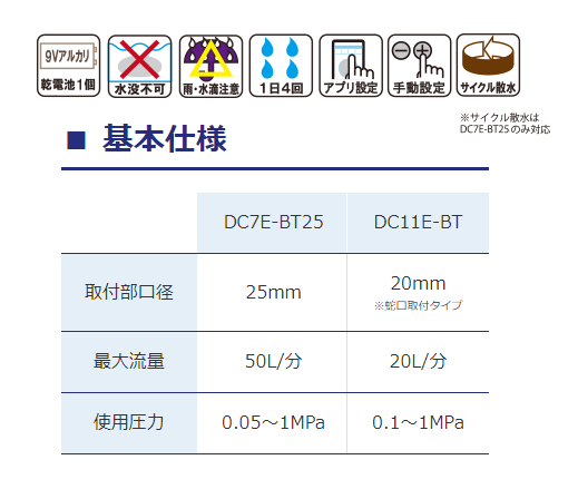 散水回数 : 1日4回まで/3・6・12時間置きサイクル散水