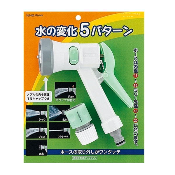 ●水流切替:レバーとボタン操作で直射・乱射・シャワー・ジョウロ・止水