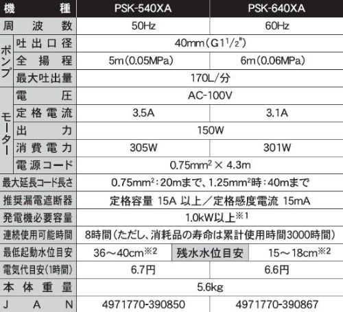 〇仕様:・吐出量(L/min):170