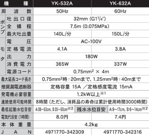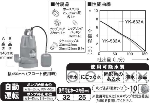 〇特長:汚水排水に手軽に使える 自動停止型 口径32ミリ 60HZ