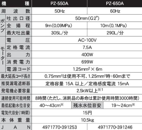 耐食性大幅アップ! 口径50ミリ 60HZ 自動停止型