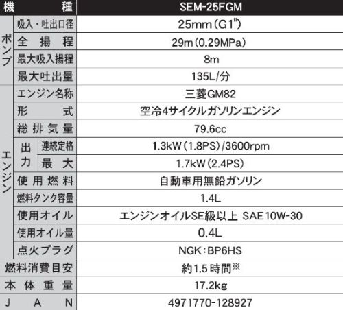 工進 エンジンポンプ 25ミリ(4サイクル)SEM-25FGM
