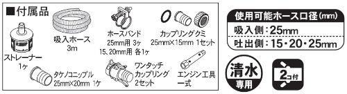 〇セット内容/付属品:吸入ホース・カップリング・バンド・ストレーナー