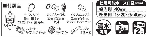 〇特長:田畑の潅水散水洗浄に最適。広い用途で使用可能なダブルフランジタイプ。吐出25ミリ40ミリ
