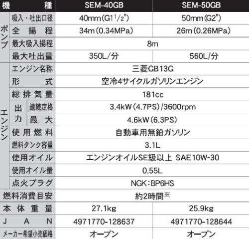 工進 エンジンポンプ 50ミリ(4サイクル)SEM-50GB
