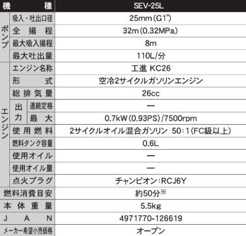 工進 エンジンポンプ 25ミリ(2サイクル)SEV-25L