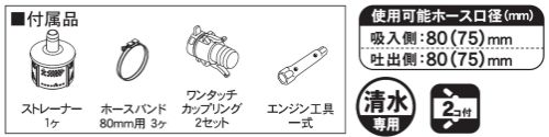 〇注意:エンジンオイルは出荷時入ってません。使用時にはポンプ内に呼び水が必要。