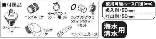 工進 樹脂製エンジンポンプ 50ミリ(4サイクル)海水用 PGH-50