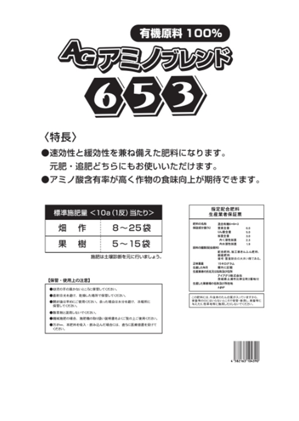 アイアグリ(株)オリジナル 有機100%肥料、AGアミノブレンド6-5-3