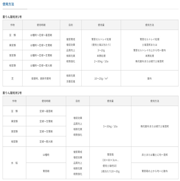 特徴: 短期間で効果を発揮するため、特に土寄せ時や夏越し・冬越し前の樹勢強化に適しています。