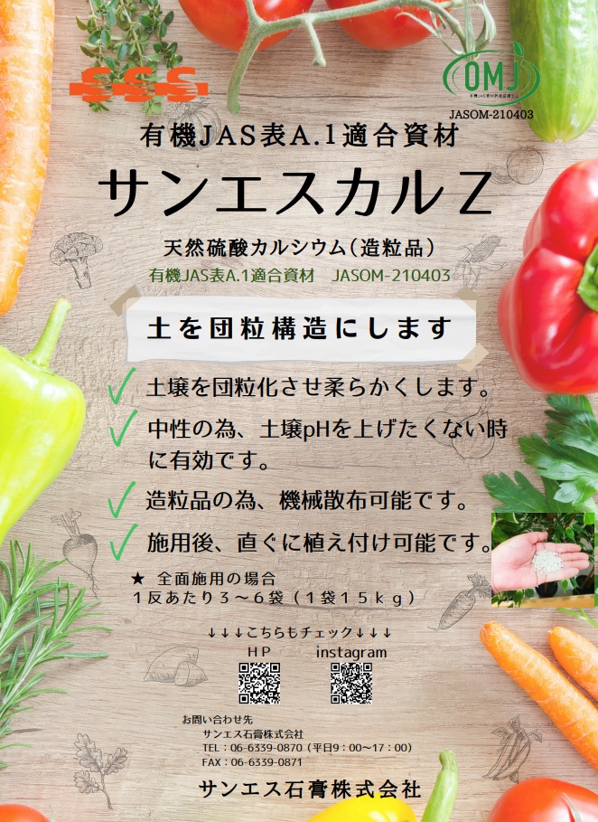 天然硫酸カルシウム資材「サンエスカルZ」|品揃えと低価格!農業資材・農業用品専門通販のインターネットホームセンター「日本農業システム」