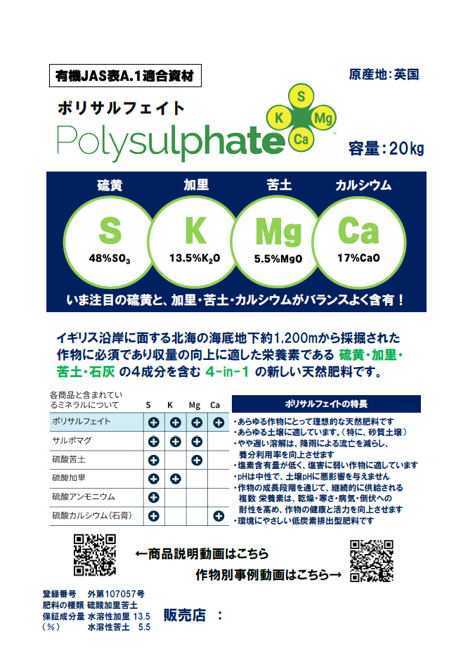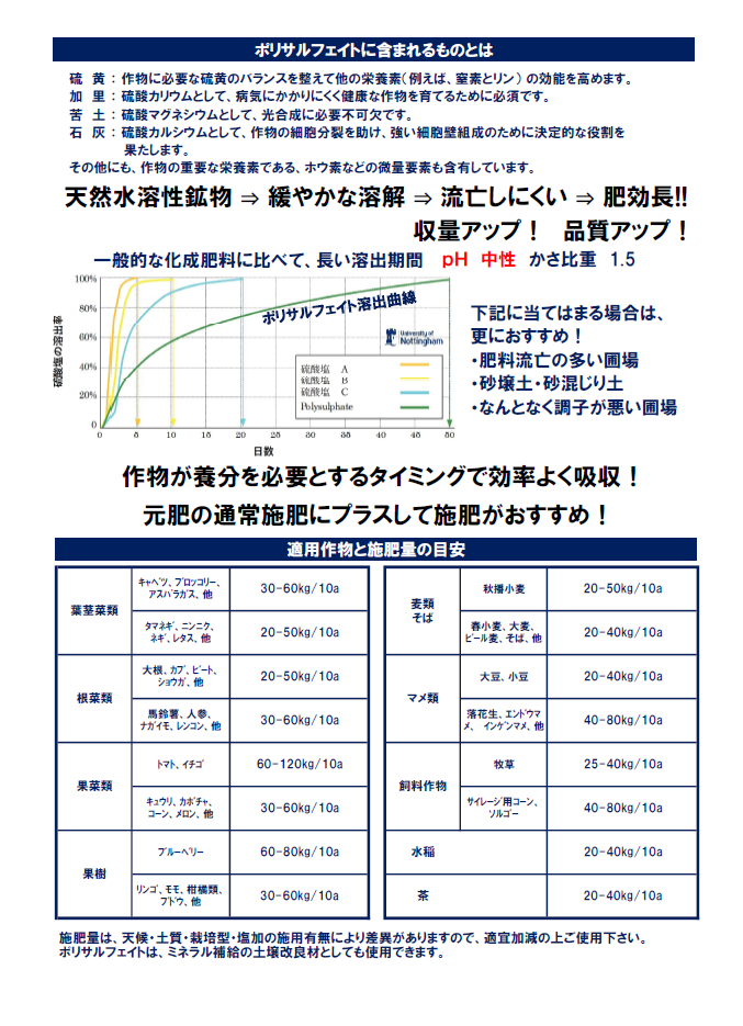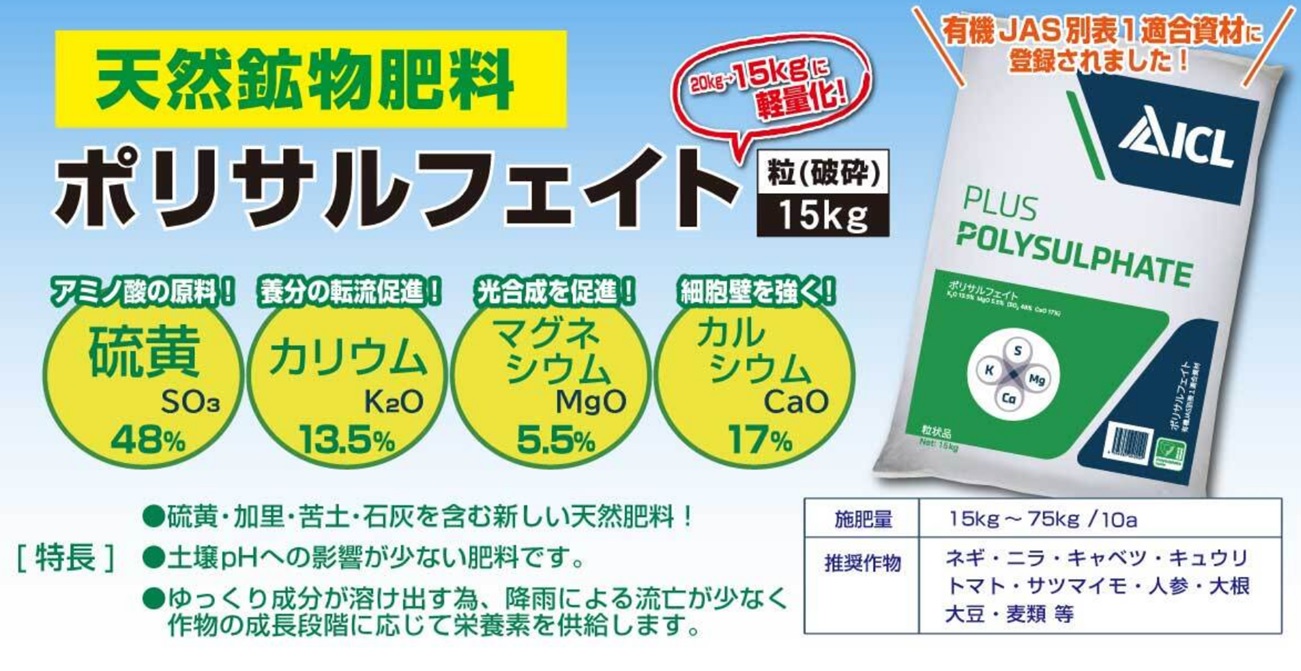 天然鉱物肥料「ポリサルフェイト」|品揃えと低価格!農業資材・農業用品専門通販のインターネットホームセンター「日本農業システム」