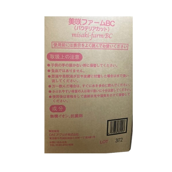 例)500倍希釈:美咲ファームBC 20mlをはかりとり、水で10Lにします。