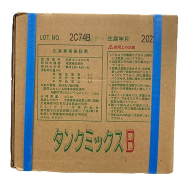 完全に溶けてからタンクミックスB 20kg(1箱)を加え、最後に水を加えて100Lにします。