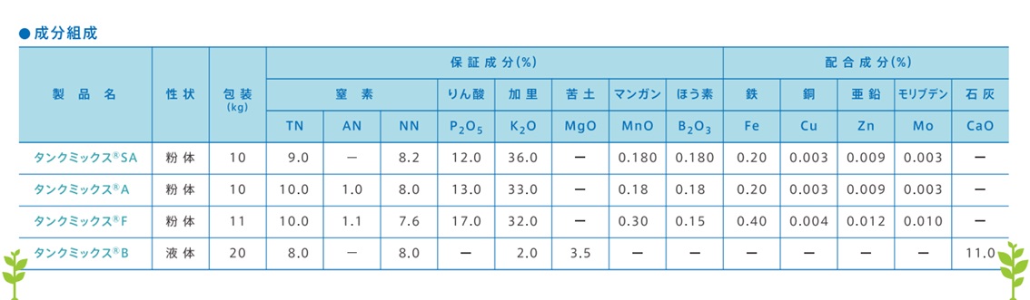 タンクミックスシリーズは窒素の大部分が硝酸態窒素で構成されており、