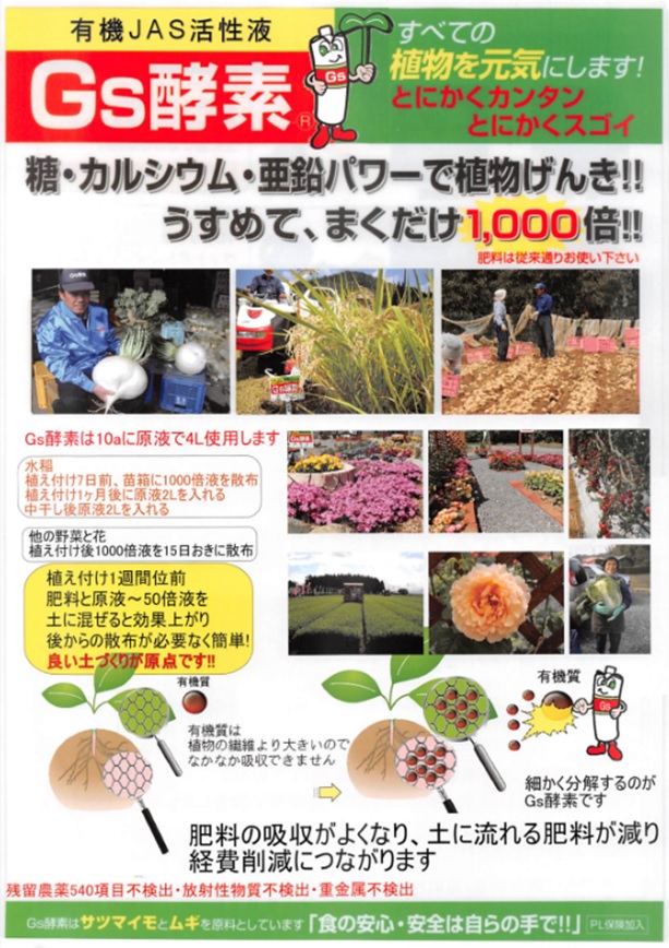 またGs酵素には肥料成分はほとんどない為、肥料設計を崩す必要がありません。
