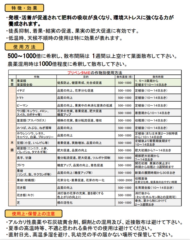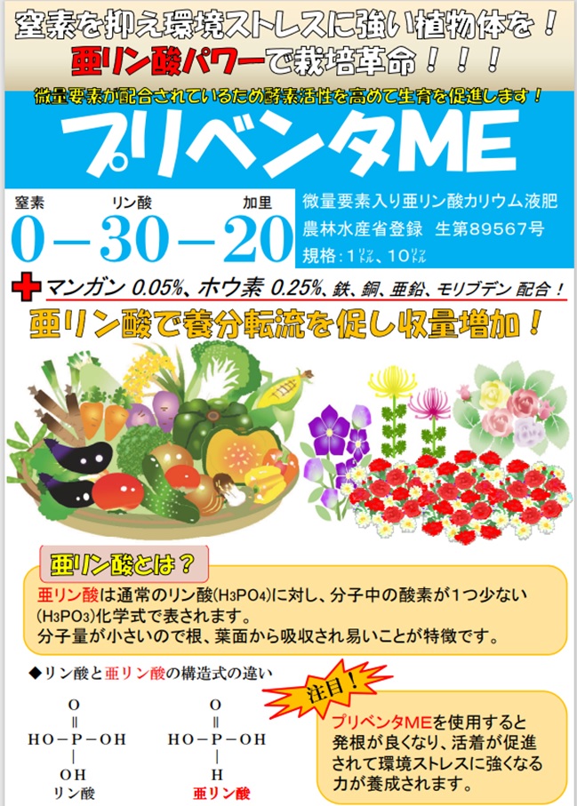 亜リン酸液肥「プリベンタME」|品揃えと低価格!農業資材・農業用品専門通販のインターネットホームセンター「日本農業システム」