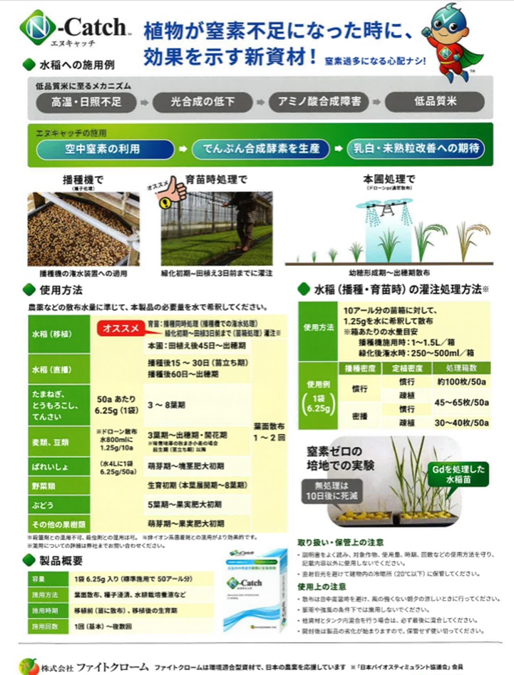 エヌキャッチは、葉からも植物体内に侵入できるので、地下部が嫌気環境である水稲にも利用可能です。
