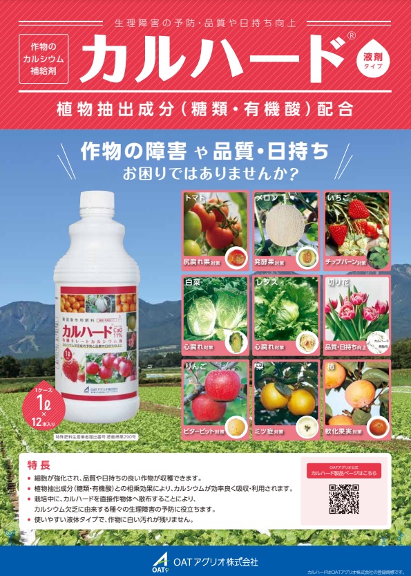 「カルハード」は生育中の作物に容易にカルシウムを補給することができ、