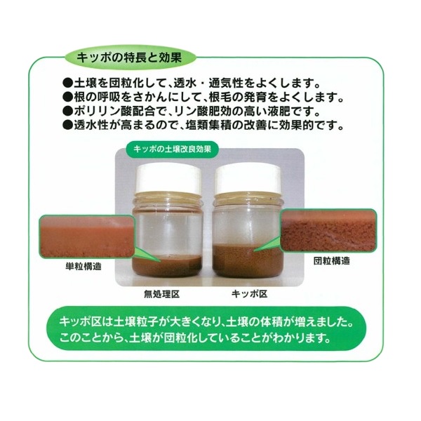 ・定植時の「根回し水」に10アールあたりキッポ青10kgを300~400倍で灌水施用します。