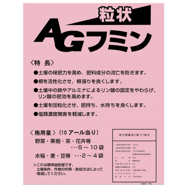 YouTubeで話題!腐食酸入りオリジナル土壌改良材「AGフミン」|品揃えと低価格!農業資材・農業用品専門通販のインターネットホームセンター「日本農業システム」