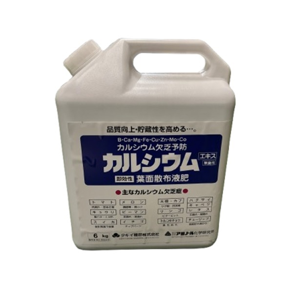 本品は即効性の葉面散布、カルシウム液肥ですから、速やかに作物にカルシウムの補給ができますので、困ったカルシウム欠乏の予防に効果を発揮します。