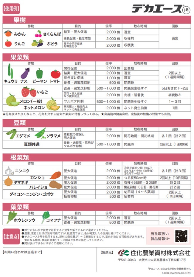 ・結実促進・果実肥大促進・糖度品質向上・成り疲れ時などは