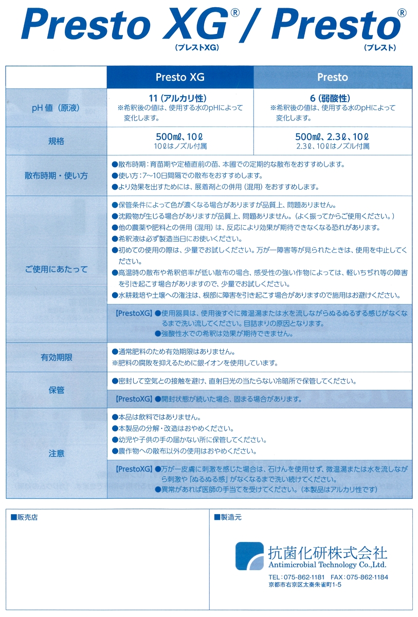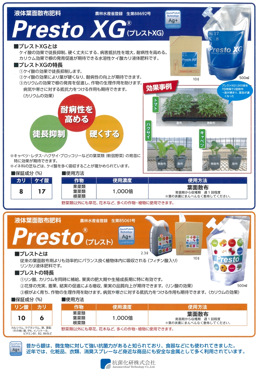 普通肥料として、既存製品Prestoに次ぐ2つ目の「銀イオン」配合登録肥料です。