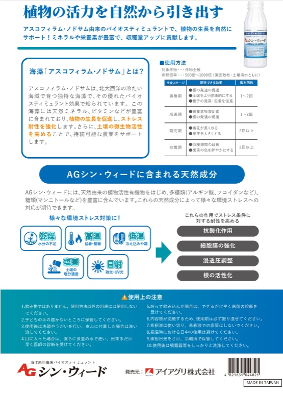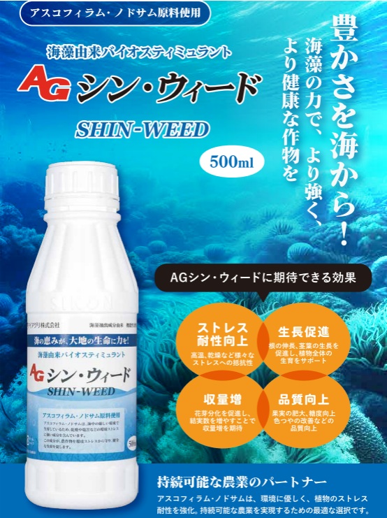 海藻「アスコフィラム・ノドサム」原料のバイオスティミュラント資材です。