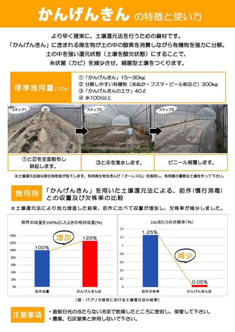 ・酸素を急速に消毒し、土壌を強い還元状態にし、有害な糸状菌が発生