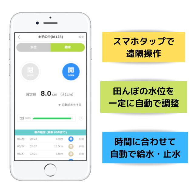・希望の水位を設定すれば自動で水位を調整。田んぼの水位を一定に保つ自動給水機能