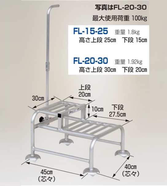 ・段付の踏台ですから1台で2通りの高さに対応でき、面倒な昇降回数を大幅に減らせます。