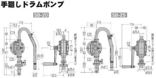 工進 手廻しドラムポンプ 20ミリ SB-20