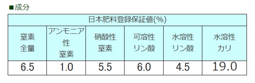 植物に必要な各種成分(カルシウム入り)をバランスよく含み、健全で充実した生育を促し、