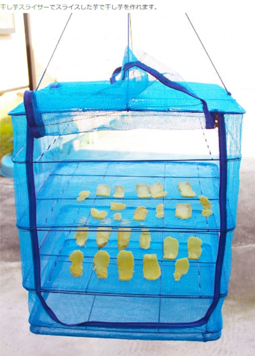 取り出し口が一面開いて使いやすい、大き目サイズの干しカゴです。
