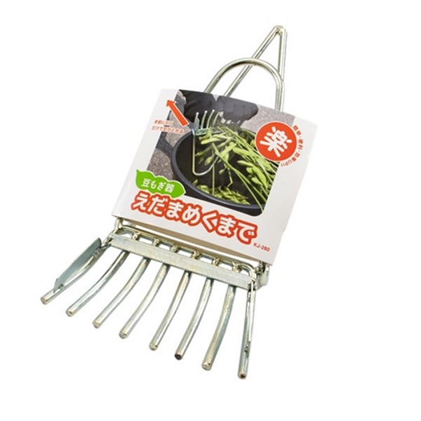 ・くまで部分に豆の付いた枝をかけ、手前に引くだけで豆が取れるので