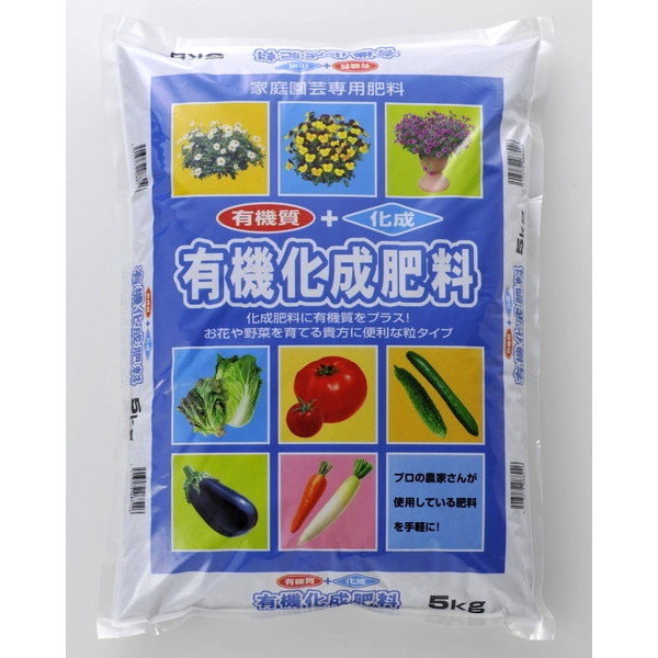 化成分が早く効き有機質分がゆっくり効き出します。お花・野菜などあらゆる植物に。