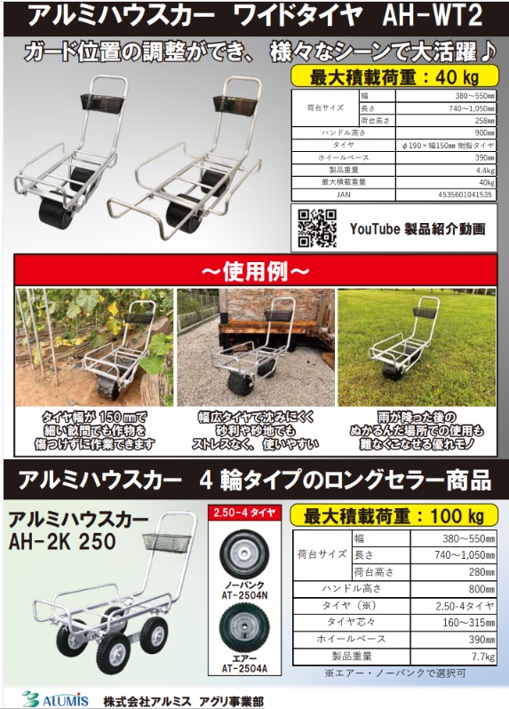 愛菜号アルミ製ハウスカー タイヤ幅調節タイプ