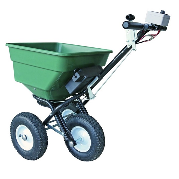 散布範囲は約5メートル、落下口を開き、回転インペラーの回転で散布します。