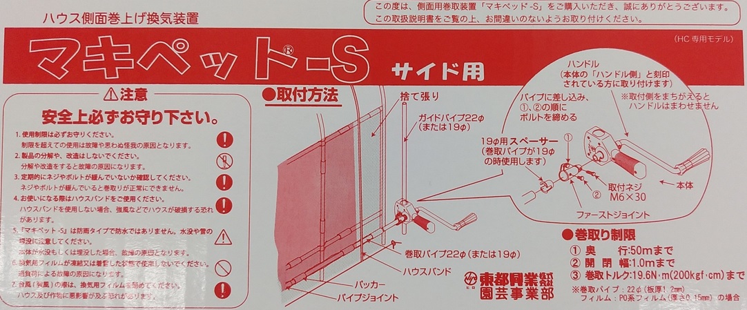 パイプハウス腰ビニール巻上げ機。50mまでのフィルムを巻き上げます。